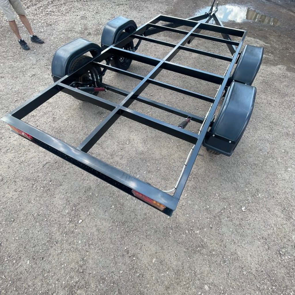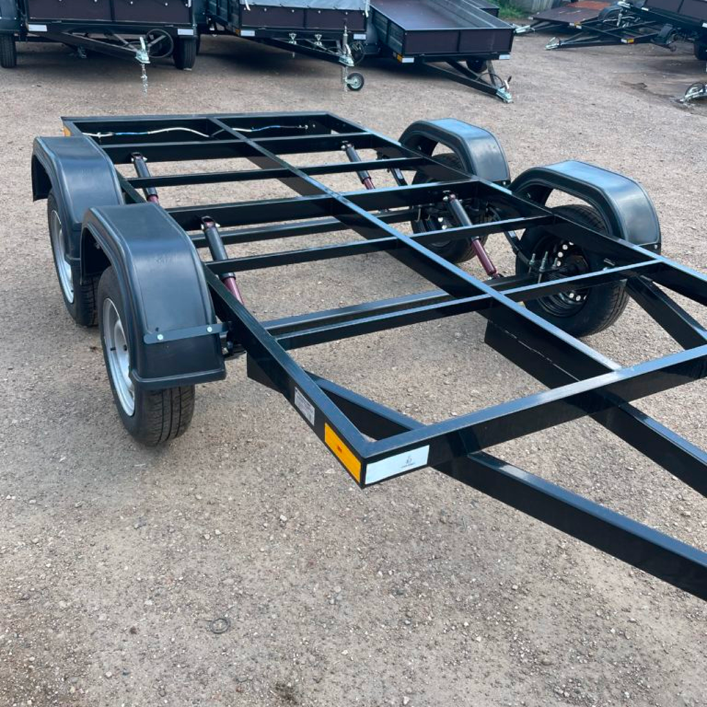 Прицеп оснащен трехлучевым V-образным дышлом, позволяющим равномерно распределять нагрузку и избегать чрезмерных воздействий на отдельные элементы. Сама конструкция выполнена их профильной трубы с сечением 80*40*3, которая сохраняет свою геометрию даже при регулярной перевозке тяжелых грузов.